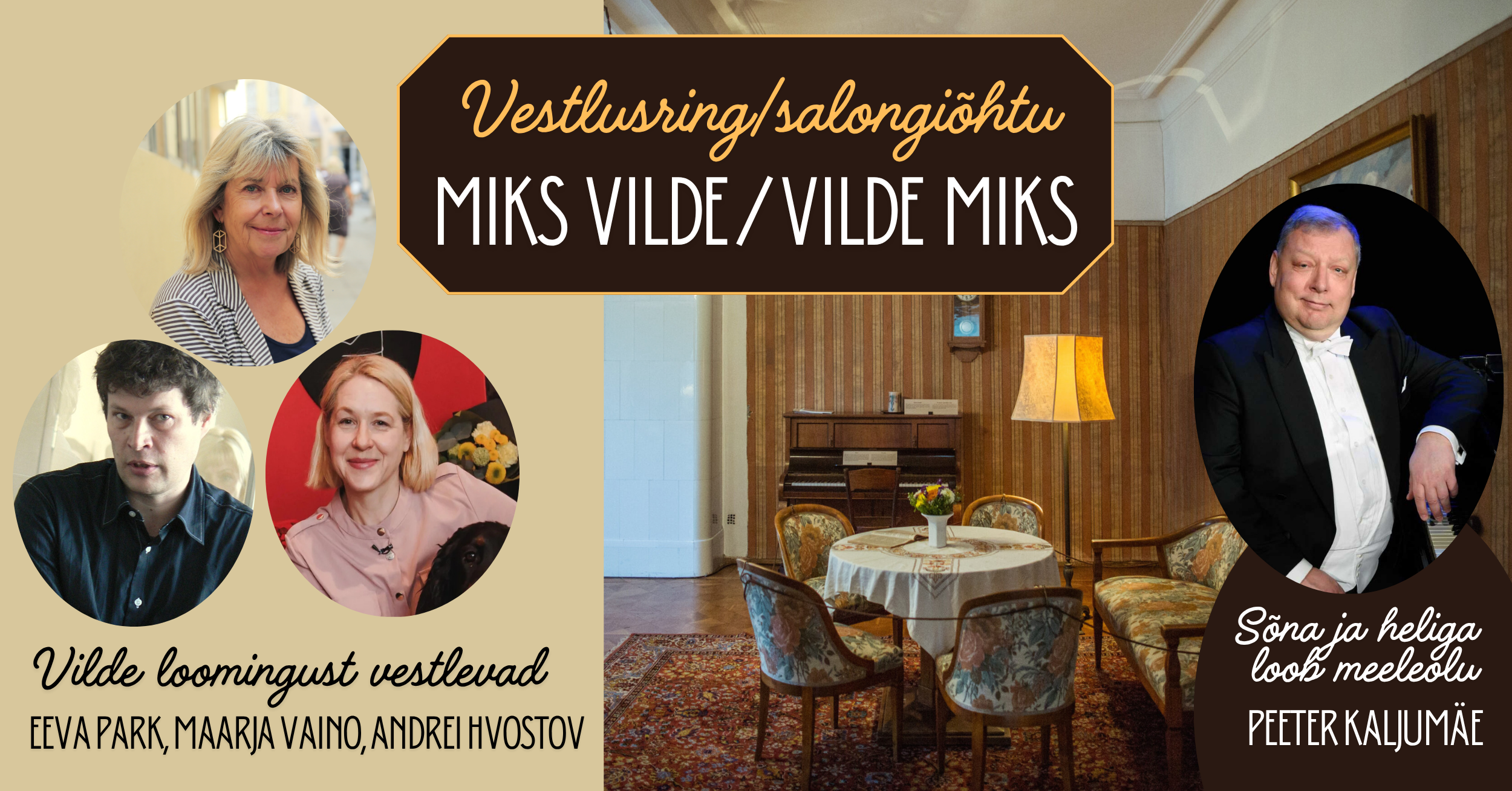 84. detsembril kell 17.30 koguneme Vilde muuseumis, et meeleolukalt lõpetada ja kokku võtta äsja möödunud Vilde 160. sünniaasta. Vilde sündis 4. märtsil 1865. Vilde loomingu teemalises vestlusringis kohtuvad Eeva Park, Andrei Hvostov ja Maarja Vaino. Muusikaliste ning sõnaliste vahepealadega astub ette Peeter Kaljumäe. Saame kuulda ajastuhõngulisi laule, mida Kaljumäe saadab…