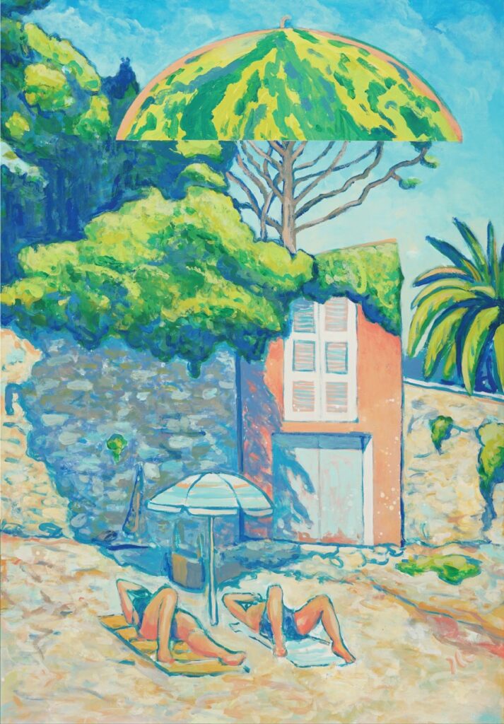 QBA kutsub oma maalidega lõunamaise päikesevalguse säravasse maailma, sõnades: “Rannas on omad reeglid ja normid puhkamiseks. Päikesevarjud on rohkem kui lihtsalt varjud, nad on lood, mida kogukonnad jutustavad ja mälestused, mille päikese jälg jätab meie südamesse. Siin, kus päikesevalgus hellitab nahka ja merelained kutsuvalt sosistavad “tule, tule”, avaneb “Magica Ombrelloni” – kütkestav vahemereline võlumaailm. Igas varjus peitub lugu, igas laines kajab kohaliku kultuuri rikkus ja elujõud.”