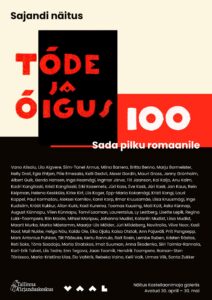 Neljapäeval, 30. aprillil kell 16.00 avatakse Tallinna Kirjanduskeskuse Kastellaanimaja galeriis näitus “”Tõde ja õigus” 100. Sada pilku romaanile”, millega tähistatakse saja aasta möödumist A. H. Tammsaare “Tõe ja õiguse” I osa ilmumisest.